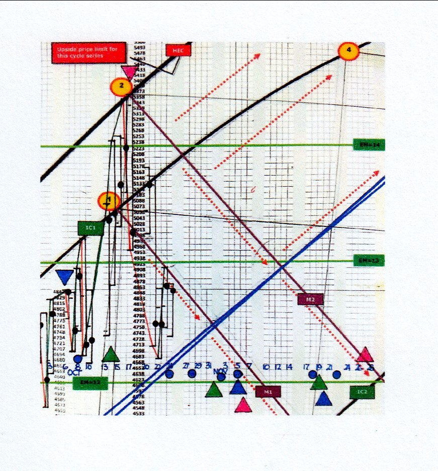 - The top on 17th October occurred at our exclusive EM timing cycles showing in our charts as coloured triangles. A blue & green triangle also occurred at the top of 6th October and bottom at 14th October.